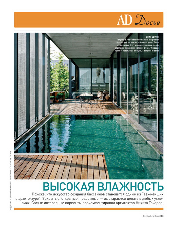 Так же в майском номере AD: 22 бассейна в разных стилях, лучшие вещи мая в магазинах Москвы, мебель и аксессуары с орнаментом и в форме зеленых листьев и многое другое.