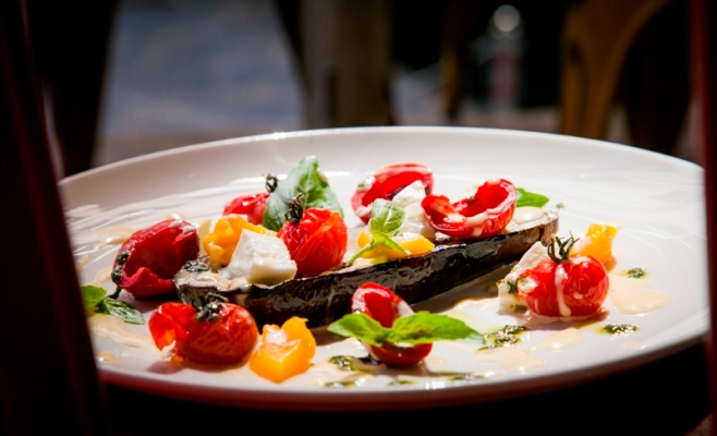 Раздел закусок порадует гостей свежими идеями от шеф-повара, среди них: овощной микс с печенью трески (470 руб.) – идеальное сочетание печени с запеченным картофелем, домашними малосольными огурцами, помидорами черри и гренками из черного хлеба с оригинальным соусом, который выгодно подчеркивает вкус блюда; салат из свежих помидоров, огурцов, редиса с мягким сыром шавру и травами (460 руб.) и летний салат с картофелем и зеленью (340 руб.). Рекомендуем попробовать карпаччо из говядины (520 руб.) или оленины с шампиньонами и ежевикой (720 руб.), тартар из лосося с лимонной заправкой (460 руб.), который тает во рту, запеченный баклажан с моцареллой и помидорами черри (380 руб.), вариацию оливье – с копченой уткой (430 руб.) и авокадо, запеченный с креветками (440 руб.).