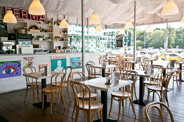 Рекомендуется попробовать: салат с запеченной свеклой, фетой и кедровыми орехами (250 р.), салат с копченой куриной грудкой и мятным соусом (250 р.), салат с овощами гриль (250 р.), гаспачо (200 р.). В качестве основного блюда выбирайте бургер из говядины с розмариновым соусом (350 р.), свиные ребра в соусе BBQ (400 р.), куриное бедро с хрустящей корочкой (250 р.), поркетту из свинины с травами и сливовым соусом (300 р.), фермерские колбаски из цыпленка (300 р.) или из свинины (300 р.). На гарнир – картофельные дольки с трюфельным маслом (150 р.), кукуруза гриль с сырным соусом (150 р.), цветная капуста с моцареллой (150 р.). На десерт лучше всего подойдет мороженое: освежиться в жару удастся при помощи пломбиров (например, со вкусом дыни, 150 р.) или сорбетов (малина или манго, 150 р.).