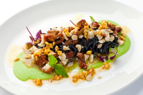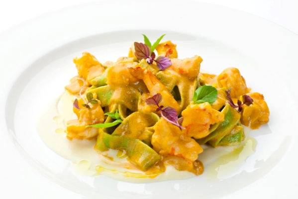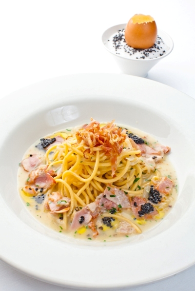 В осенном меню зеленые паппардели с «песто россо», креветками и кремом из баклажана, таглиолини neri с сибасом,сушеными помидорчиками и соусом из брокколи и фундука, фетучини с рагу из утки, лазанья с креветками и песто из базилика. Спагетти а ла карбонара «Карлсон» в исполнении Джакомо Ломбарди отличается от всеми любимого классического блюда тем, что подается с пеной из пармезана в яичной скорлупе и украшена «жемчужиной из трюфеля».