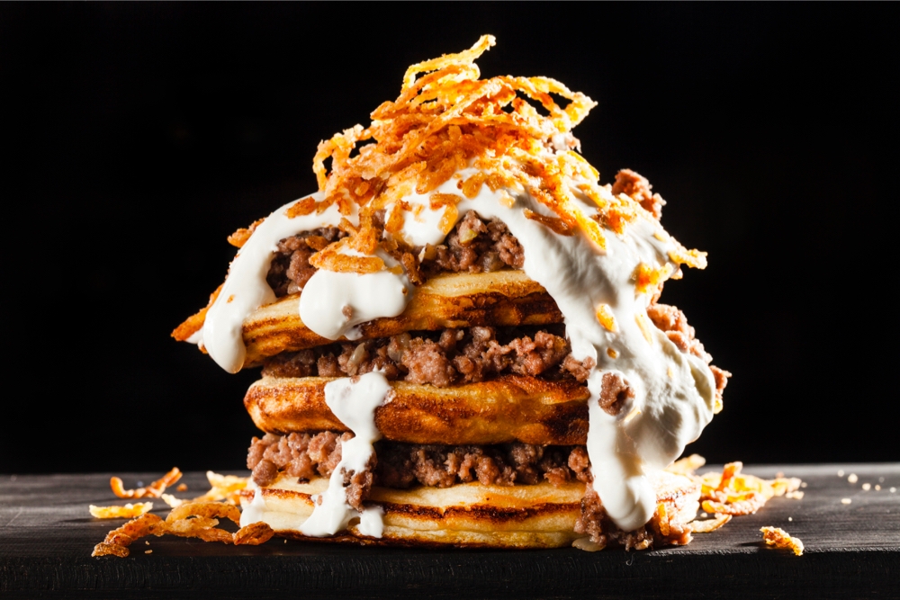 Панкейки с фаршем из отварной говядины