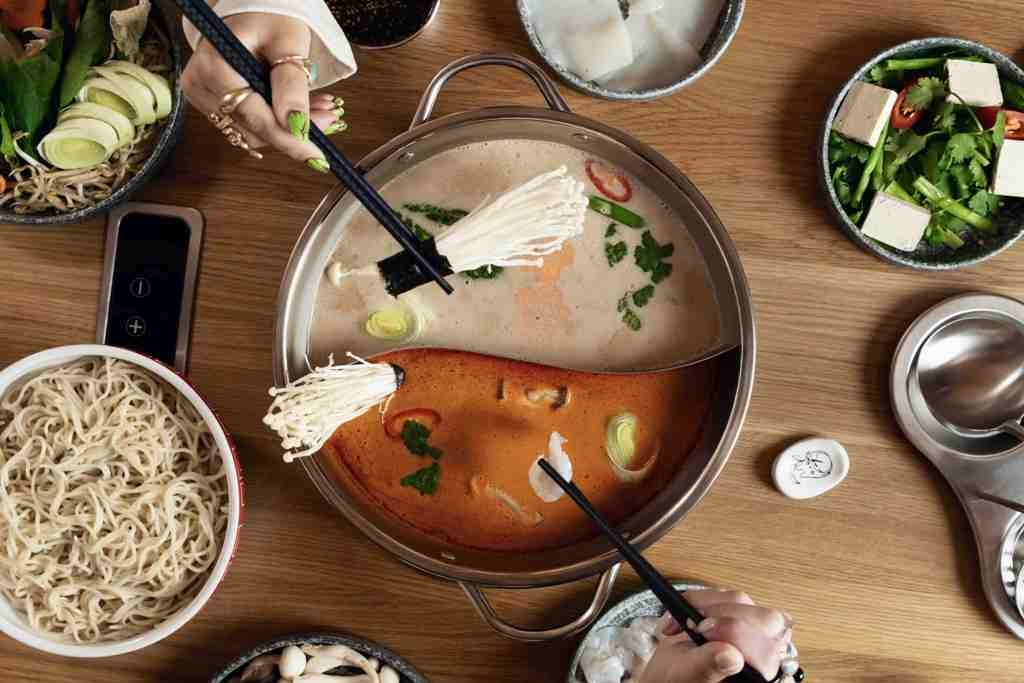 На первом этаже классический RA’MEN на 120 посадочных мест. Из нового – Ичираку-комната, где можно приготовить хот-пот на кипящем бульоне. К нему выносят все необходимые ингредиенты для самостоятельного приготовления блюда. В меню три вида хот-пота: на бульоне скияки и два хот-пота в сплит-горшочках с двойным бульоном – на кокосовом и говяжьем с перцем чили и хого с том-ям и кокосовым бульоном. К первым двум приносят мраморную говядину, грибы, овощи и лапшу, а ко второму – морепродукты с овощами и грибами. Все ингредиенты подают по отдельности. В Ичираку-комнате проводятся мастер-классы по приготовлению рамена, лапши, моти или суши (за афишей можно следить на сайте или соцсетях).