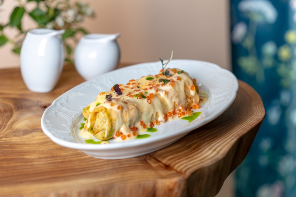 Шеф-повар Артём Мартиросов создал к Масленице очень гастрономичное меню с яркими сочетаниями продуктов.