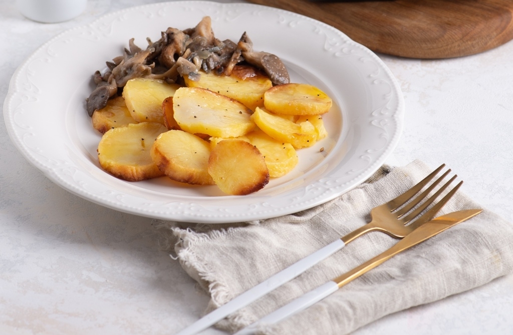 В салате с вешенками и фасолью сразу два источника белка: фасоль делает блюдо сытным и сбалансированным по составу, а грибы добавляют выразительный вкус и нежную текстуру. Соус «Гравлакс» дополняет композицию лёгкой остротой и свежестью благодаря дижонской горчице, лимонному соку и оливковому маслу.